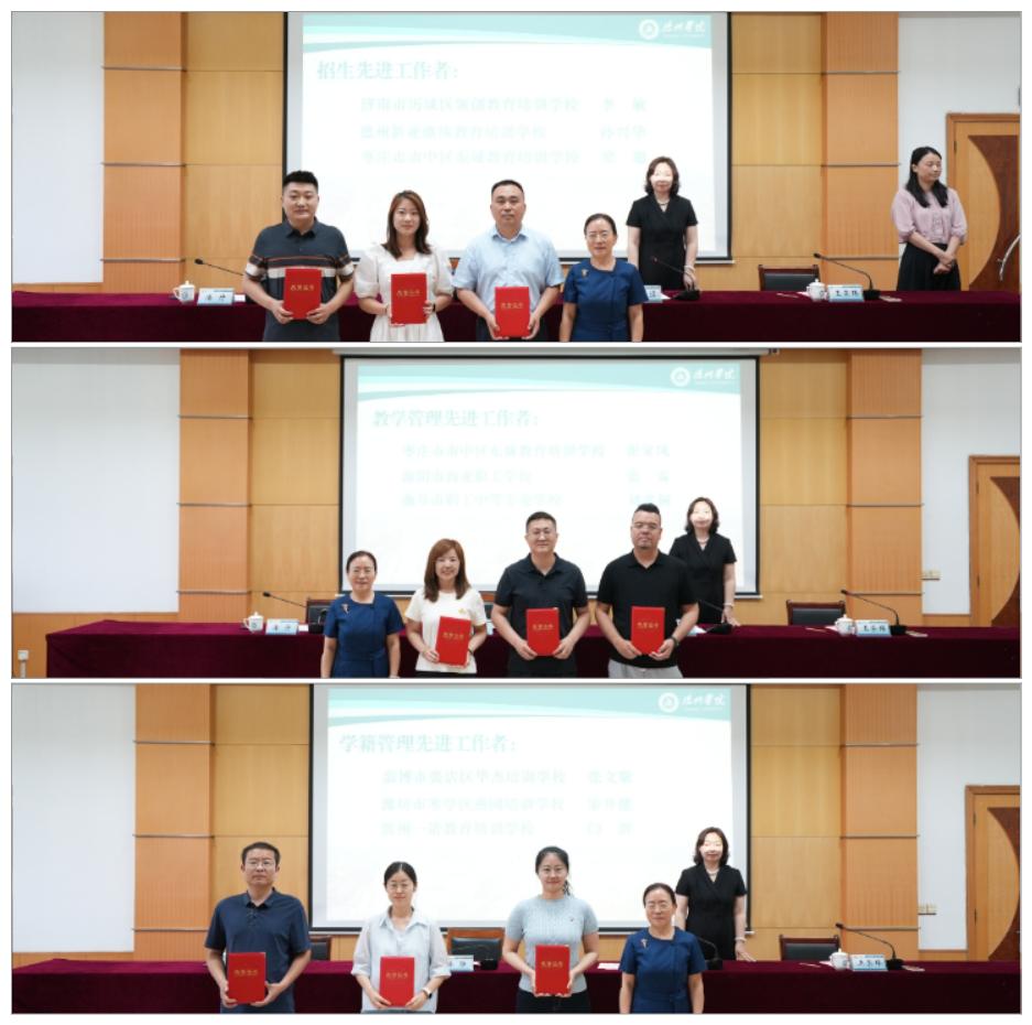 会议汇报了学校高等学历继续教育2024年工作情况与2025年工作计划,表彰了办学先进集体和先进个人,颁发了奖牌与荣誉证书。济南市历城区领创教育培训学校校长王增军和海阳市商业职工学校校长姜帅作了办学经验分享。